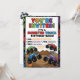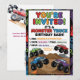 A cool Birthday theme with monster trucks! You can personalize this invitation with your own details.