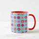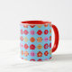 fun and vibrant patterned mug with flowers and dice