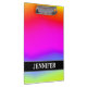 This clipboard design features a fun, rainbow-like multicolored gradient pattern featuring various shades of colours like yellow, orange, red, pink, purple, blue and green. It also features a custom name.