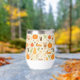 This design showcases a delightful fall-themed pattern filled with cosy autumn elements. The design includes illustrations of pumpkins, slices of pumpkin pie topped with whipped cream, warm fall beverages in to-go cups, and butternut squash. Scattered among these are cinnamon sticks, star anise, sprigs of greenery, autumn leaves, acorns, and small berries, all set against a soft cream background. The pattern exudes a warm and inviting atmosphere, perfect for celebrating the flavours and colours of the autumn season.
