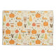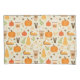 This design showcases a delightful fall-themed pattern filled with cosy autumn elements. The design includes illustrations of pumpkins, slices of pumpkin pie topped with whipped cream, warm fall beverages in to-go cups, and butternut squash. Scattered among these are cinnamon sticks, star anise, sprigs of greenery, autumn leaves, acorns, and small berries, all set against a soft cream background. The pattern exudes a warm and inviting atmosphere, perfect for celebrating the flavours and colours of the autumn season.