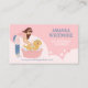 Make a lasting impression with our fun and playful pet groomer business card, perfect for mobile or salon grooming businesses. The front features our hand-drawn illustration of a young woman wearing a pink striped apron, washing a cute golden doodle in a blush pink bathtub — against a soft pink bubble background. The back is fully customizable, allowing you to add your business name, slogan, contact details, your name, and job title, along with the charming illustration of the young lady holding a cute French bulldog. Ideal for mobile pet groomers, dog grooming salons, cat groomers, pet stylists, pet spa services, and even pet sitters or dog walkers, this card is designed to showcase your brand in a fun, professional, and memorable way.