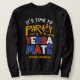 Fun PARTAY WITH YERBA MATÉ sweatshirt with CUSTOMIZABLE TEXT for people who love to drink Yerba Mate herbal tea – especially for its health benefits. Yerba Maté is a popular cultural alternative to coffee in Argentina and Paraguay and is gaining in popularity worldwide. Yerba mate is the national drink of Paraguay and is drunk from a gourd, using a bombilla 'straw'. It is made from the leaves of the Ilex paraguariensis plant. Yerba maté parties are a growing trend with groups of friends and besties. The wording on this design reads IT'S TIME TO PARTAY WITH YERBA MATE in bold, colourful lettering. The YERBA MATÉ is in the colours of the flag of Paraguay. The CUSTOMIZABLE TEXT reads 'Official Epicurean' and can be PERSONALIZED with your name or other text. Argentina colour version also available.
