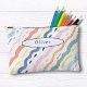 A personalised pencil pouch featuring your name and a fun colourful striped pattern. The perfect zipper case for storing your art supplies for back to school or any time of year.
