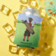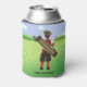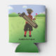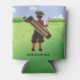 A fun cartoon design featuring a golfer in vintage attire standing in the rough looking towards the green and flag. The golfer is carrying a golf bag with golf clubs. Any name or initials can be entered to create a unique personalised golf gift for the keen golfer or golf fan