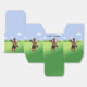 A fun cartoon design featuring a golfer in vintage attire standing in the rough looking towards the green and flag. The golfer is carrying a golf bag with golf clubs. Any initials can be entered to create a unique monogrammed golf gift for the kean golfer or golf fan