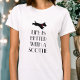 "Life is better with a Scottie" — this cute t-shirt features a vintage-inspired illustration of a Scottish Terrier running along, paired with stylish typography. Personalise the template with a fun saying or family motto. A perfect gift for friends, family, dog lovers, and fans of the popular Scotty dog! Printed colours: black and red.