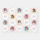 This wrapping paper features a colourful sprinkle design over a black background with 5 photo bubbles. Easily customise the name and add 5 uniques photos of the guest of honour. A colourful, fun, unique wrapping paper — perfect for a tween girls birthday party!