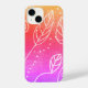 This original abstract art leaf design on pink and yellow distressed style background has stylised leaves modern art available on iphone cases. Original artwork copyright Ann Powell