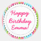 These fun colourful striped and dotted personalised stickers will brighten any party decoration! Add them to paper cups, goody bags, invitations, envelopes, cupcake toppers or any where else that your imagination can think of! Original design created by Kelly Schwark. Matching products also available.