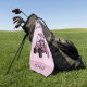 This customisable ladies golf towel features a golf cart with pink and green argyle details, printed glitter, plus a customisable name to personalise. It's a stylish pink accessory that would be a good gift for any woman who plays golf.