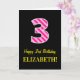 Fun Pink Striped "3"; Happy 3rd Birthday; Name Card
