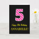 Fun Pink Striped "5"; Happy 5th Birthday; Name Card