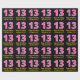 This fun birthday-themed wrapping paper design features a large number "13" with a dark pink and light pink stripes pattern, along with the message "Happy 13th Birthday,", and a customisable name. The background is coloured black. Wrapping paper like this might be used when giving a gift or present in honour of somebody’s 13th birthday. [~Z0000376]