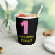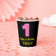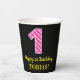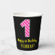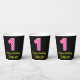 Fun Pink Stripes “1”: Happy 1st Birthday + Name Paper Cups