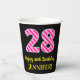 Fun Pink Stripes “28”: Happy 28th Birthday + Name Paper Cups