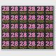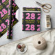 This fun birthday-themed wrapping paper design features a large number "28" with a dark pink and light pink stripes pattern, along with the message "Happy 28th Birthday,", and a custom name. The background is coloured black. Wrapping paper like this might be a fun way of wrapping a birthday present or gift being given to somebody who is celebrating their twenty eighth birthday. [~Z0000376]