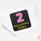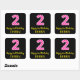 Fun Pink Stripes “2”: Happy 2nd Birthday + Name Square Sticker
