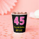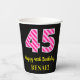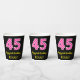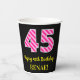 Fun Pink Stripes “45”: Happy 45th Birthday + Name Paper Cups