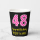 Fun Pink Stripes “48”: Happy 48th Birthday + Name Paper Cups