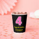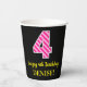 Fun Pink Stripes “4”: Happy 4th Birthday + Name Paper Cups