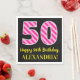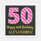 Fun Pink Stripes "50"; Happy 50th Birthday; Name Napkin