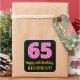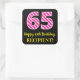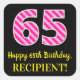 Fun Pink Stripes “65”: Happy 65th Birthday + Name Square Sticker