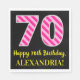 Fun Pink Stripes "70"; Happy 70th Birthday; Name Napkin