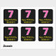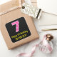 Fun Pink Stripes “7”: Happy 7th Birthday + Name Square Sticker