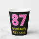 Fun Pink Stripes “87”: Happy 87th Birthday + Name Paper Cups