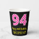 Fun Pink Stripes “94”: Happy 94th Birthday + Name Paper Cups