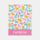 Fun Pink & Teal Dinosaur Pattern Fleece Blanket