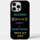 A cheerful expression bursts forth as a hand holds a creatively designed case, featuring colourful text. The words humorously announce that Jennifer has plans with her dog, instantly conveying a lighthearted spirit and the bond between pets and their owners.