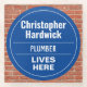 Fun Commemorative Style Wall Plaque Gift in the form of a Glass Coaster for a Plumber. Blue and white plaque. Edit the design to change the wording to suit the gift recipient.