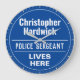 Fun Commemorative Style Wall Plaque Gift in the form of a Wall Clock for a Police Sergeant. Blue and white plaque. Edit the design to change the wording to suit the gift recipient.