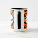 Boo! Is the message on this funny orange Halloween mug covered in little black bats. Perfect for spiced cider, mulled wine, coffee, tea or a spooky witches brew! Fill with a bag of candy corn, Halloween cookies or other treat and to make a nice hostess/host gift, party favour, or a piece of fun Halloween home décor!