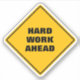 A classic yellow diamond caution road sign warns of hard work ahead in a thick black sans serif font. A pun play on words of a classic sign, road work ahead, perfect for school books, journals, vision board.