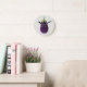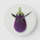 Fun Purple Modern Minimal Crochet Eggplant Round Clock