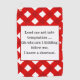 Red gingham with black text.