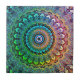 This fun multicolored mandala design sports rainbow colours and heart shapes, sure to brighten any day or any decor with a slight boho touch. A mandala is a geometric symbol that focuses patterns around a centre. It's often used in various spiritual traditions for focusing attention and for meditation. It can also represent self-introspection, unity, and harmony.