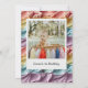 This exquisite birthday party invitation exudes elegance and charm with its vibrant rainbow cake adorned with shimmering gold stars. The perfect combination of whimsy and sophistication, this invitation sets the tone for a celebration that promises to be as delightful as it is luxurious. Let your guests know they are in for a truly magical experience with this stunning design. The back is adorned with this exquisite baby photo frame, set against a vibrant rainbow background that exudes joy and happiness.
