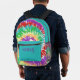 Unleash your authentic individual style with our retro tie dye backpack, designed especially for those kids who always want to be 'stylin!' This one features a purple, red, turquoise, green, yellow and orange swirl on the front and sides. The top of the backpack is turquoise, as is the handy pocket up front. You put your name on the top of the pocket using the easy template provided. This backpack is designed to fit all your needs. It's not only fun, but it's made of durable polyester poplin to ensure it's extra durable. It's perfect for school, travel, trips to the gym or dance lessons, college students and more. It features adjustable padded shoulder straps, two separate compartments for laptop storage, mess side pockets for your water bottle and an identification label. Lots more varieties in my shop at https://www.zazzle.com/store/digiscrapthat/products?cg=196431024163602393.