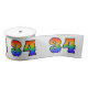 This fun, happy and vibrant ribbon design features the number "34" with a colourful rainbow-inspired gradient pattern, on a light grey coloured background. Ribbon like this could perhaps be used when wrapping gifts or presents being given for somebody’s thirty fourth birthday, or perhaps for a couple’s thirty fourth wedding anniversary, or some other 34th event. [~Z0000321]
