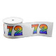 This fun, happy and vibrant ribbon design features the number "72" with a colourful rainbow-inspired gradient pattern, on a light grey coloured background. Ribbon like this could perhaps be used when wrapping gifts or presents being given for somebody’s seventy second birthday, or perhaps for a couple’s seventy second wedding anniversary, or some other 72nd event. [~Z0000321]