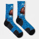 Each sock has a cute coconut octopus in a Santa hat over a background of blue water.