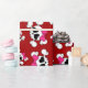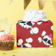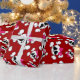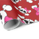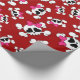 Cute skulls with heart eyes and pink bows pattern with red background. Cute skull gift ideas ideal for halloween.