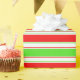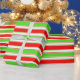 This Christmas colours design features a green, white, and red coloured stripes pattern. Wrapping paper like this might be used when preparing gifts being given in celebration of a birthday, a wedding, an anniversary, or some other event.