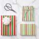 These festive, fun designs feature Christmas themed striped patterns having colours like green, white, and red. It might be fun to use wrapping paper sheets like these when wrapping gifts or presents being given in celebration of Christmas.