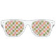 These fun party sunglasses are designed with a retro chequerboard design in pink, orange, olive toned greens, and cream. Simple and cute - perfect for a birthday party or other special occasion! Great for the party itself or for send-home favours! *Pattern by Tracey Khalei / Orabella Prints.