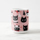 Fun retro cat faces on a pink background. It doesn't get much more fun than that as a Christmas gift for your cat lover friends, or yourself, at holiday time. Originating as part of midcentury patterns we celebrate black and white kitties in their red accented Christmas duds in the midst of matching holiday ephemera.